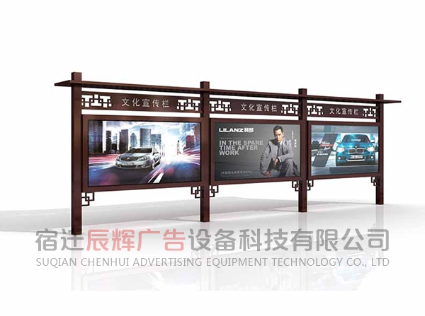 宣傳欄是一種VI應用,是組織或企業單位等進行自我宣傳的有效手段,常被應用于街道,工廠等公共場所;一般采用不銹鋼為框架,鋼化玻璃或者耐力板為面板,鋁合金為頂棚,面板可以打開更換宣傳畫面。現如今,宣傳欄廣泛應用于學校、小區、會議館、展廳等各個場地。